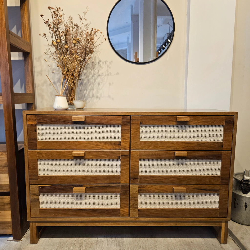 Cómoda Polo en Madera de Petiribi con 6 Cajones y Esterilla – 120 cm – LMO
