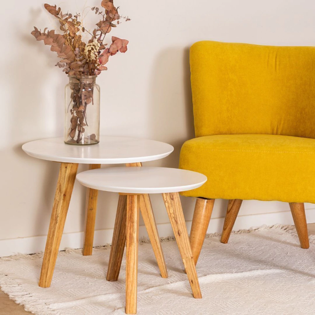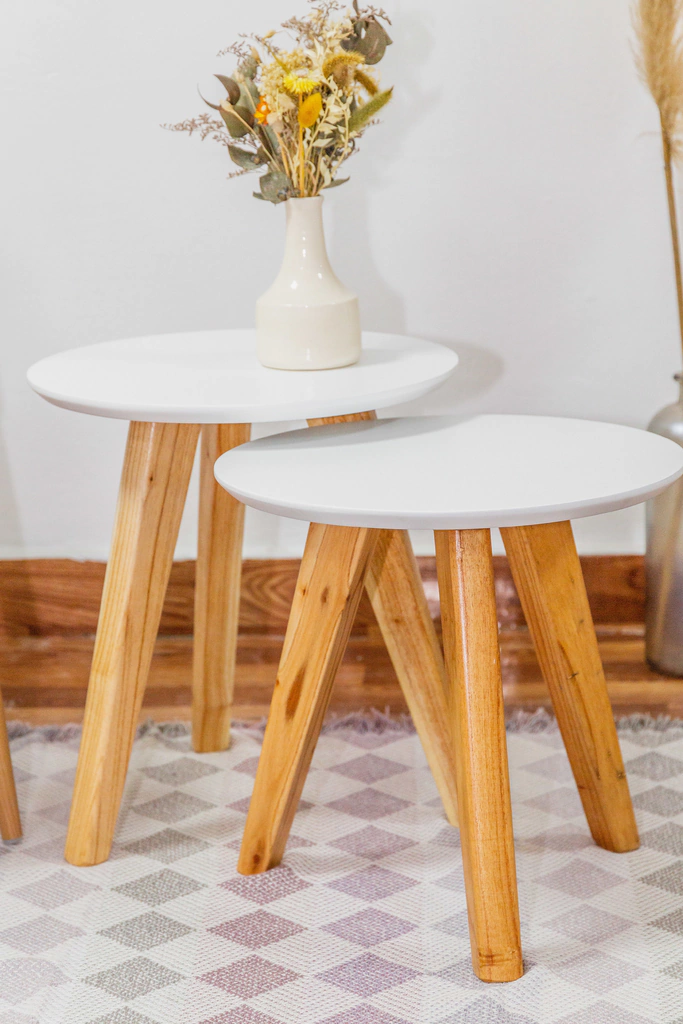 ¡Transforma tu espacio con nuestro elegante juego de mesas bajas nórdicas Elsinor! 🌿 Estas mesas son perfectas para cualquier tipo de ambiente, desde los más modernos hasta los más vintage, aportando un toque natural y acogedor a tu living.